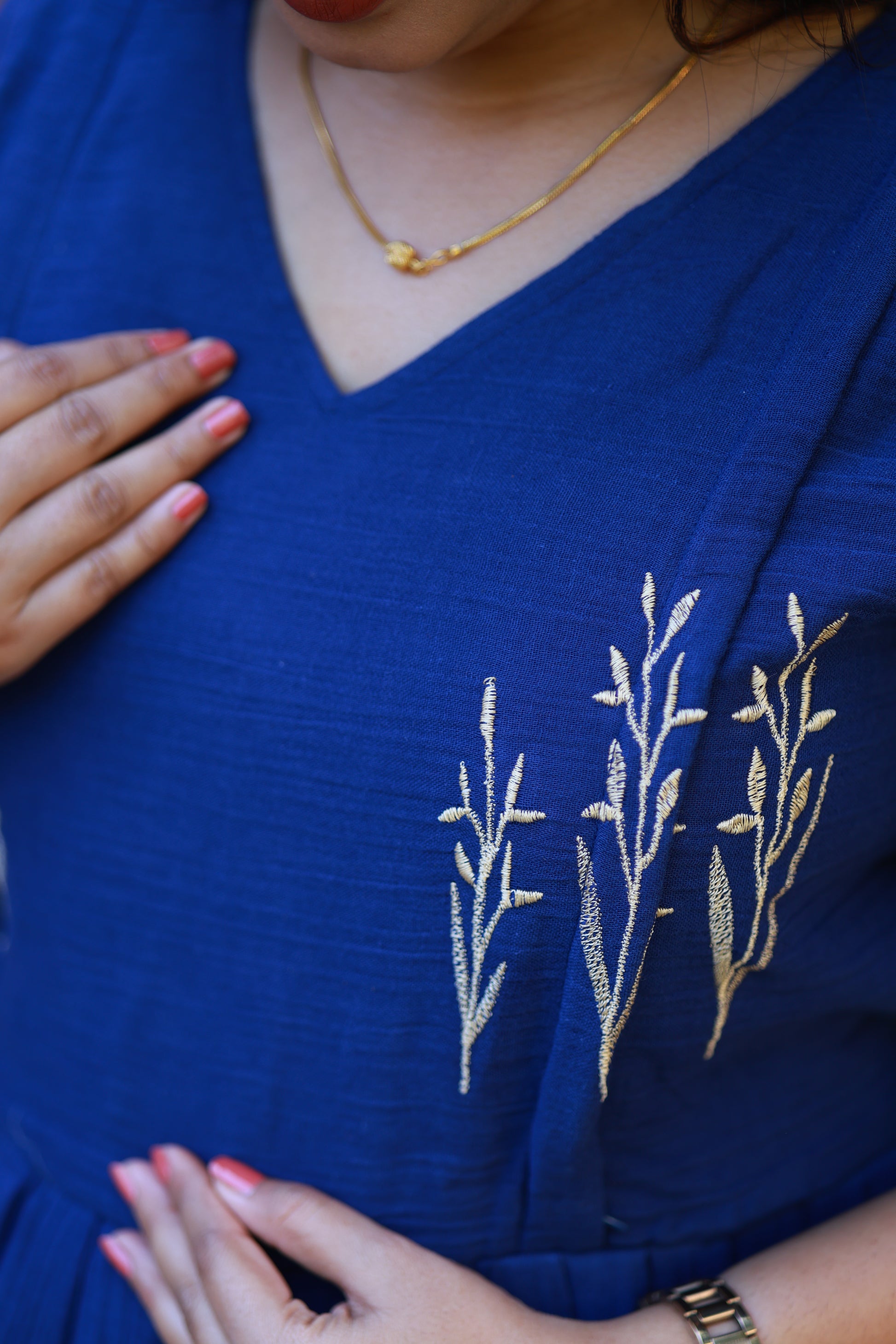 Maternity Maxi/Gown - Blue Muslin Embroidered